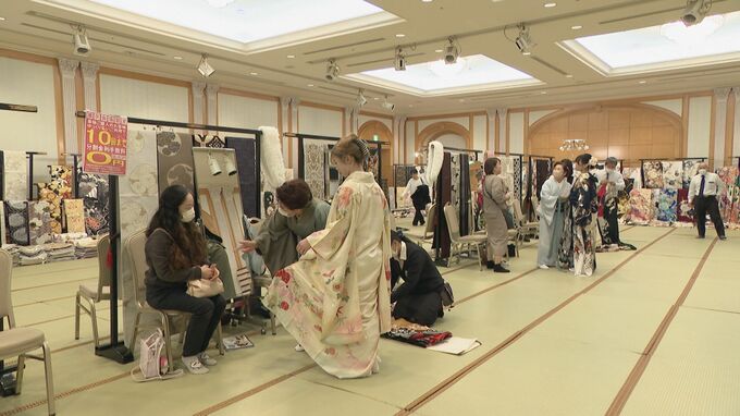 会場には、来年以降に成人を迎える女性や、その母親が訪れていました。
