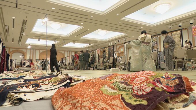 「大振袖博」は、東海地方でショッピングセンターを展開するヨシヅヤが毎年開いていて、新作を含めた1500枚以上の振袖の展示や販売をしています。