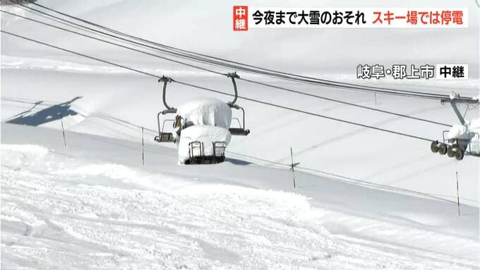 岐阜県郡上市高鷲町のスキー場では、10日11時50分現在、停電が発生しており、リフトやゴンドラが止まっています。