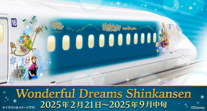 「ピーター・パン」や「アナと雪の女王」、「塔の上のラプンツェル」が新幹線に。東京ディズニーシーとコラボした新幹線「Wonderful Dreams Shinkansen」が、2月21日から期間限定で運行します。