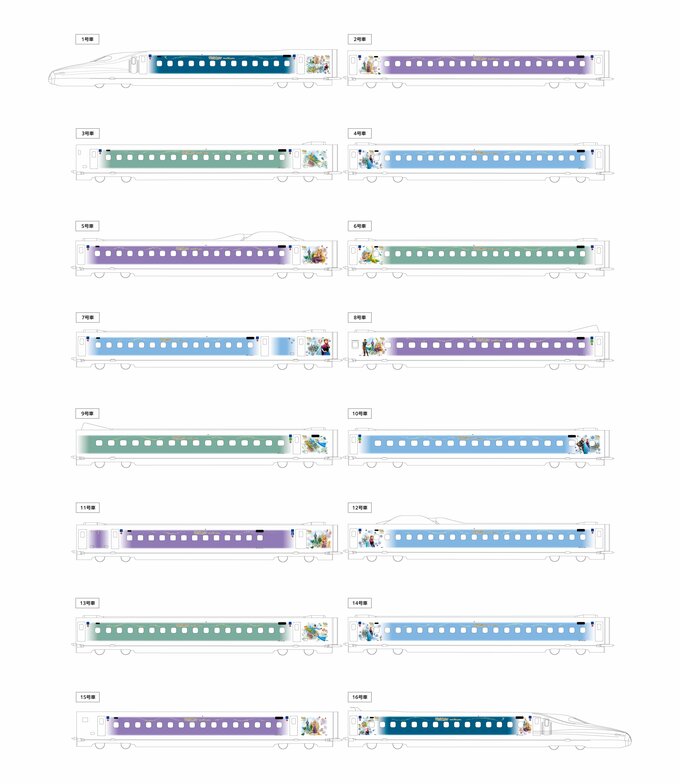 1号車と16号車は「3つのテーマエリアを1つにした」デザインです。