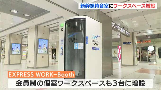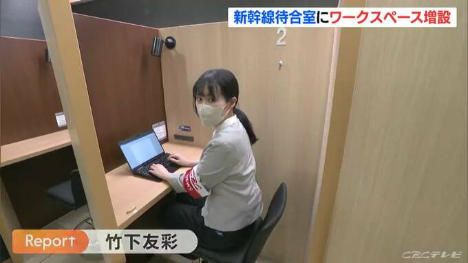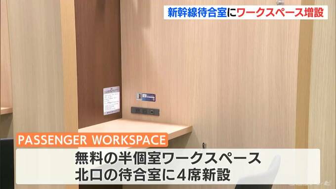 名古屋駅には去年10月、新幹線の乗車前後の時間を有効に使えるようにと南口の待合室に無料のワークスペースが5席設置され、好評だったことから、北口にも4席増やし、30日から利用できるようになりました。