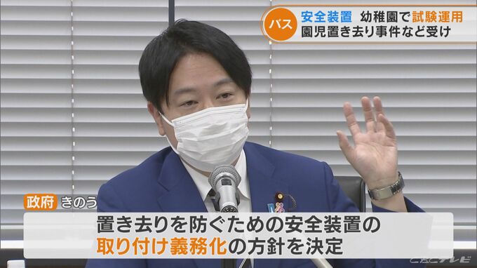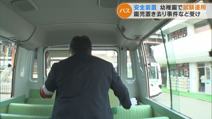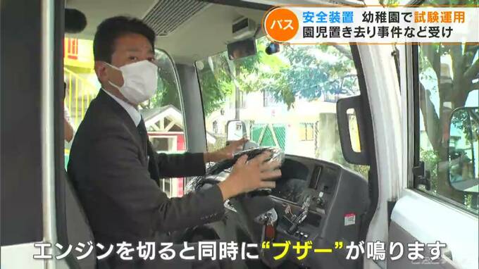 静岡県で3歳の女の子がバスに置き去りにされ死亡した事件を受け、政府は安全装置の取り付けを義務化する方針を決定しました。こうした中、愛知県の会社が一足早く、安全装置の試験運用を行いました。