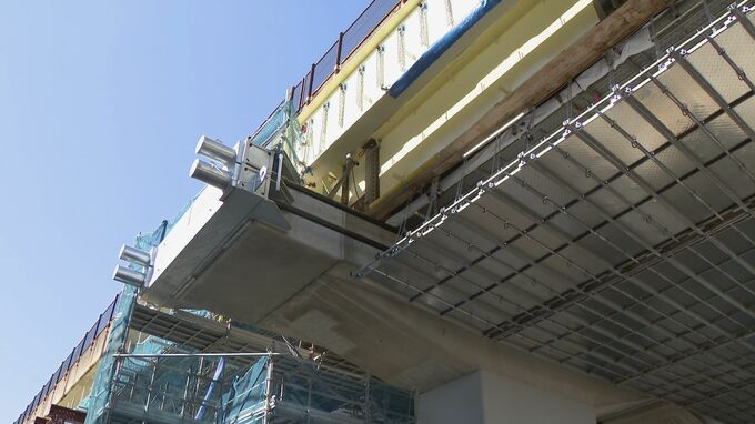 開通して50年目を迎えた津島高架橋では、路面の下にあるコンクリート製の床板の老朽化が進んで取り替える必要があり、まずは橋脚の幅を拡大するなど下り線の道路幅を広げる工事の準備から取りかかるということです。