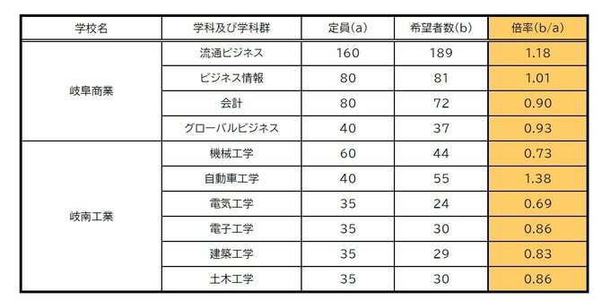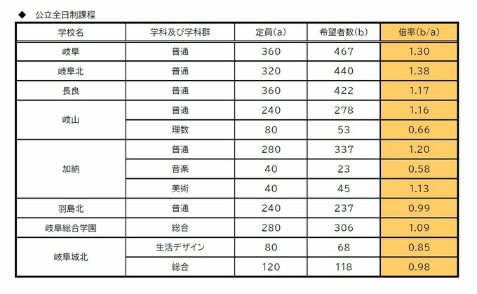 岐阜県公立高校入試2025 岐阜1.30倍 大垣北1.08倍 各務原西1.41倍 岐阜北1.38倍 など【進路希望状況・倍率】全校掲載・令和7年1月調査