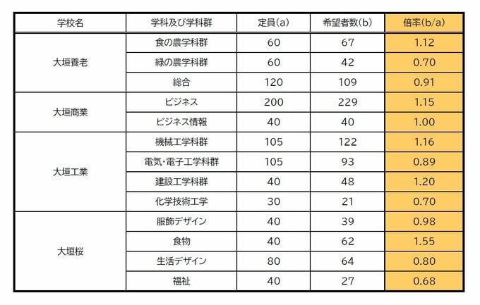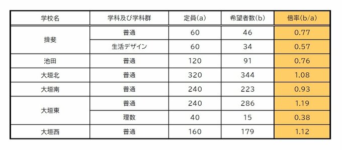 岐阜県公立高校入試2025 岐阜1.30倍 大垣北1.08倍 各務原西1.41倍 岐阜北1.38倍 など【進路希望状況・倍率】全校掲載・令和7年1月調査