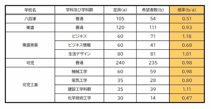 岐阜県公立高校入試2025 岐阜1.30倍 大垣北1.08倍 各務原西1.41倍 岐阜北1.38倍 など【進路希望状況・倍率】全校掲載・令和7年1月調査