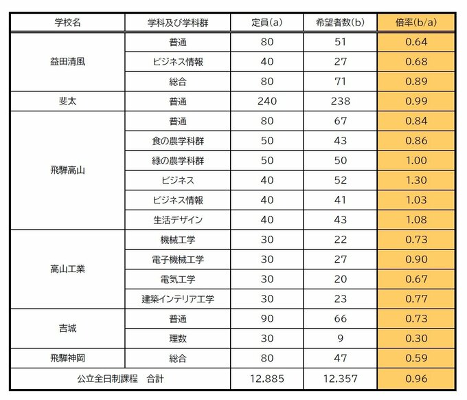 岐阜県公立高校入試2025 岐阜1.30倍 大垣北1.08倍 各務原西1.41倍 岐阜北1.38倍 など【進路希望状況・倍率】全校掲載・令和7年1月調査