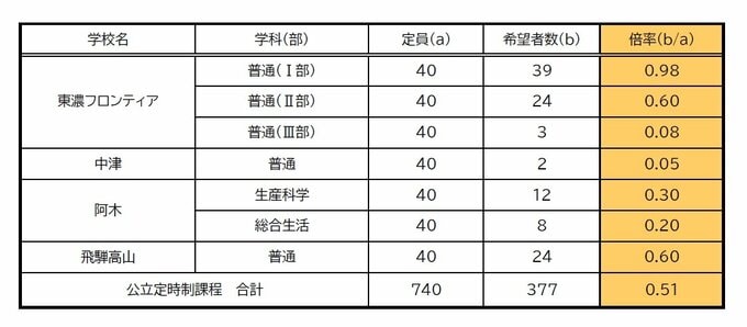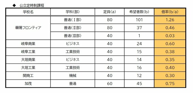 岐阜県公立高校入試2025 岐阜1.30倍 大垣北1.08倍 各務原西1.41倍 岐阜北1.38倍 など【進路希望状況・倍率】全校掲載・令和7年1月調査