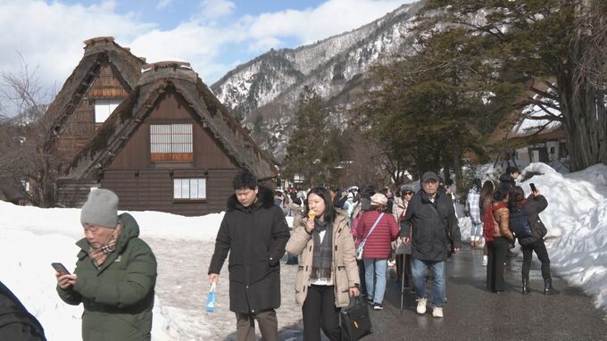 28日も多くの中国人らが訪れていた白川郷の観光施設。
