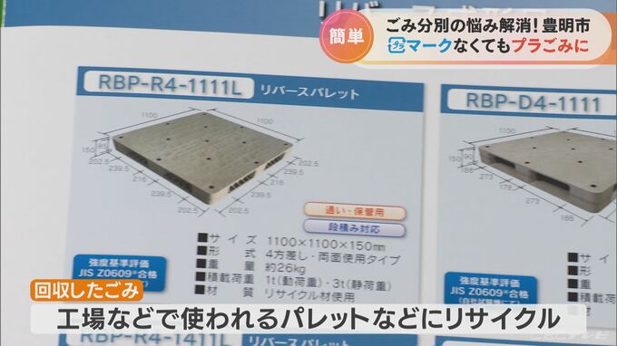 豊明市によりますと、プラマークのないプラスチックごみを一括回収することで年間100トンの可燃ごみを削減でき、回収したごみは、工場などで使われるパレットなどにリサイクルされます。