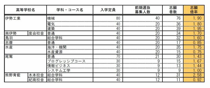 三重県公立高校入試2025 志願倍率「四日市西・数理情報コース」4.70倍 「相可」3.83倍「四日市西・比較文化 歴史コース」3.50倍 前期選抜・特別選抜・連携型中高一貫教育の出願状況 2025年1月30日(木) 11:55 国内