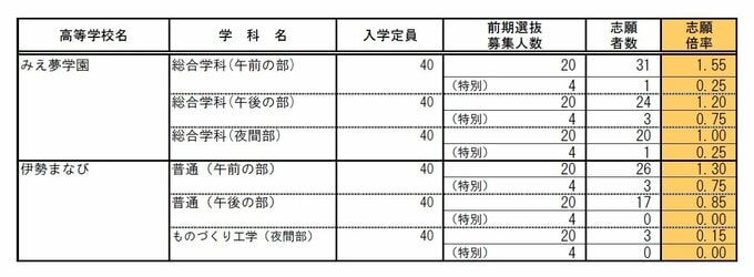 三重県公立高校入試2025 志願倍率「四日市西・数理情報コース」4.70倍 「相可」3.83倍「四日市西・比較文化 歴史コース」3.50倍 前期選抜・特別選抜・連携型中高一貫教育の出願状況 2025年1月30日(木) 11:55 国内