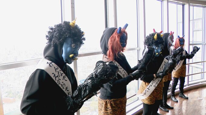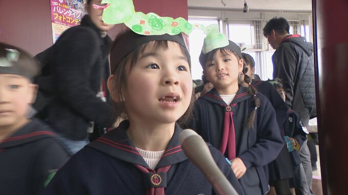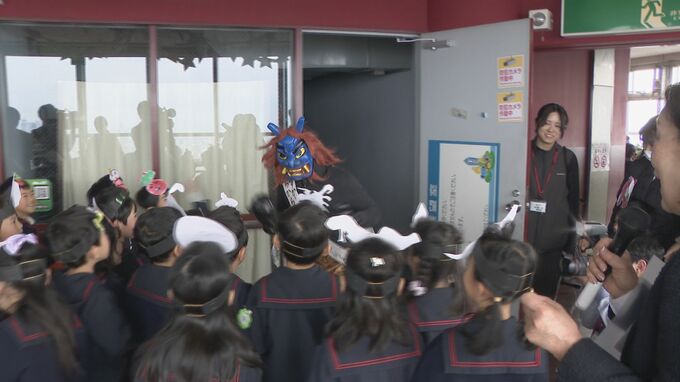 2月2日の節分を前に、名古屋の東山スカイタワーで幼稚園児が豆まきをしました。鬼が登場すると…