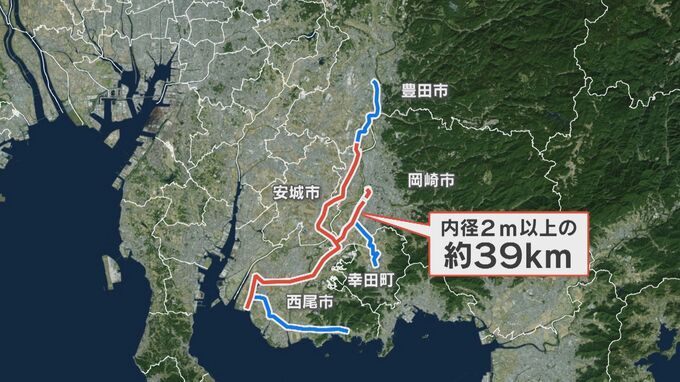 3日緊急点検が行われたのは、流域下水道としては愛知県下で最大規模の、矢作川流域下水道の下水道管です。点検の対象となったのは、県が管理する全長約72キロのうち、内径が2メートル以上の下水道管およそ39キロ分です。