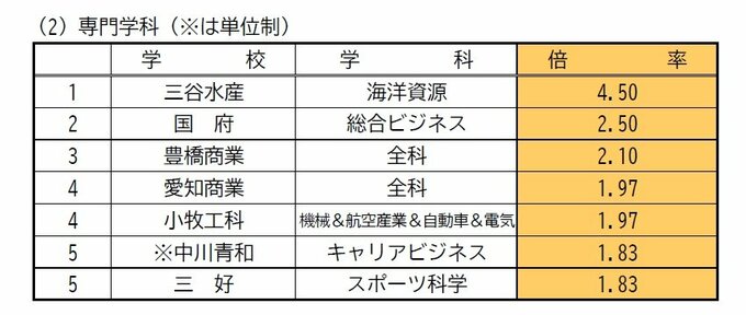 3. 愛知県公立高校入試2025 出願状況 推薦・特色選抜などの倍率 普通科では「熱田」3.42~5.13倍「向陽」3.13~4.69倍「大府」3.03~4.54倍など