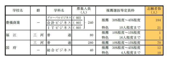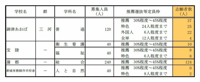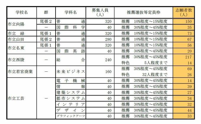 3. 愛知県公立高校入試2025 出願状況 推薦・特色選抜などの倍率 普通科では「熱田」3.42~5.13倍「向陽」3.13~4.69倍「大府」3.03~4.54倍など