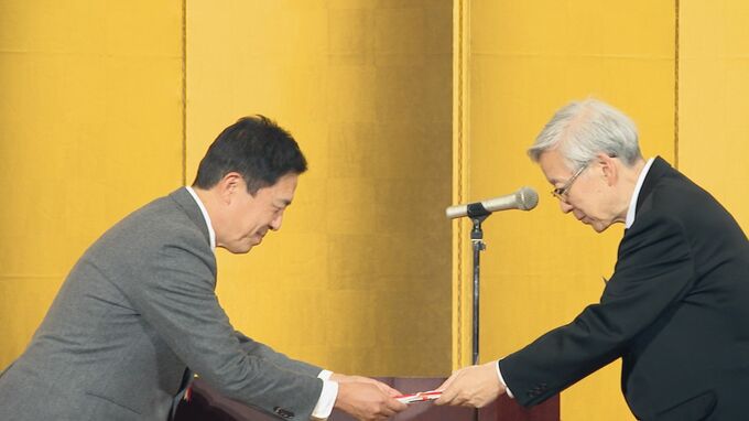 4日に名古屋市・中区のホテルで開かれた記念式典では、リンナイの社長も務める内藤弘康会長をはじめ、関係者約250人が出席しました。