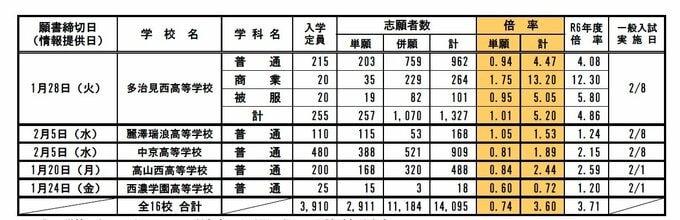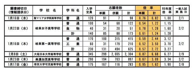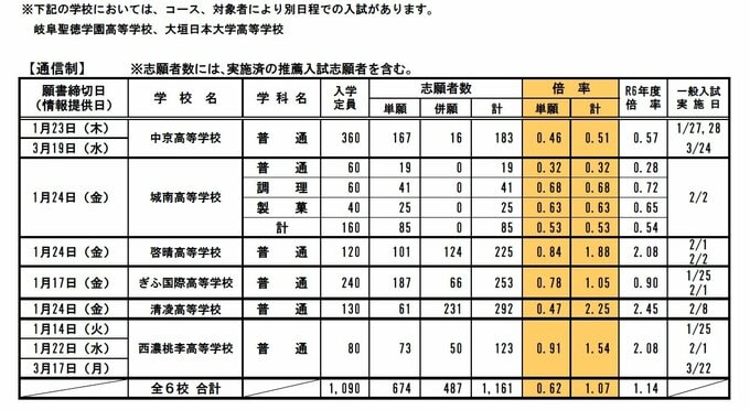 岐阜県私立高校入試2025 志願状況・倍率 多治見西 商業科13.20倍 美濃加茂 普通科3.09倍 鶯谷 普通科6.27倍 令和7年度全日制・通信制【全校掲載】