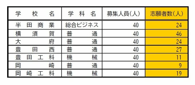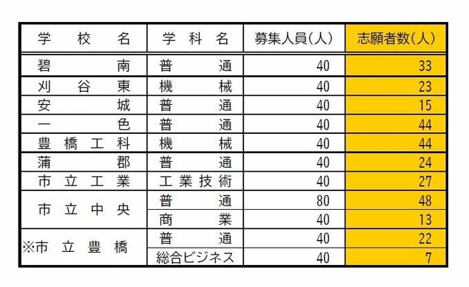 愛知県公立高校入試2025 定時制課程の志願状況・倍率 一宮1.30倍、御津あおば1.45倍、横須賀1.15倍など 令和7年度【全校掲載】