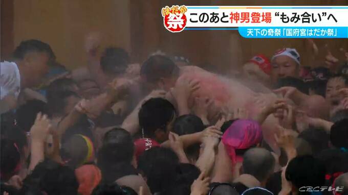 下帯姿の何千人ものはだか男たちが、壮絶なもみ合いを繰り広げます。