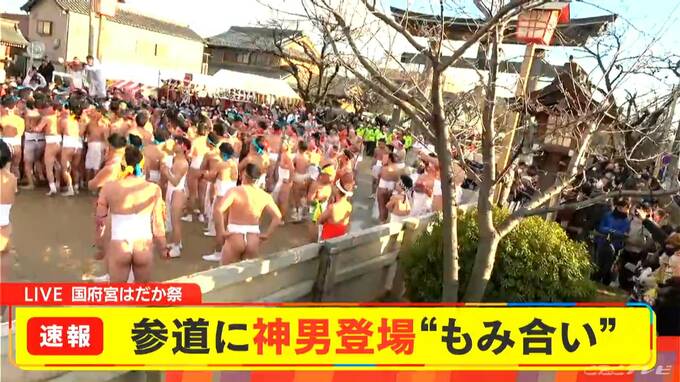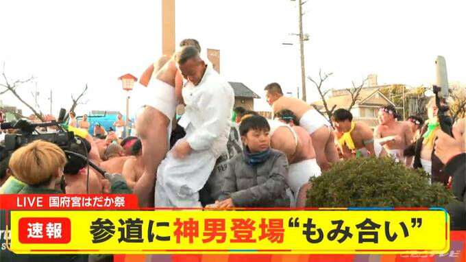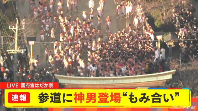 愛知県稲沢市の国府宮で行われている「はだか祭」は、午後4時31分、祭の主役の「神男」が参道に登場しました。