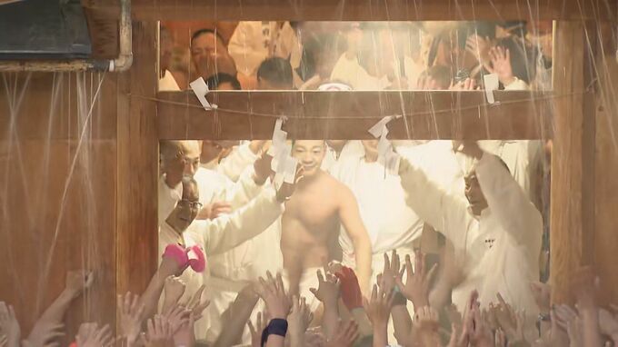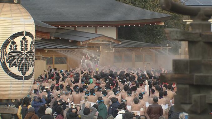 10日、約8000人が勇壮なもみ合いを繰り広げた国府宮はだか祭。