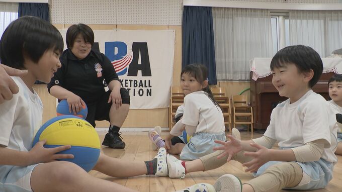 バスケットボールのさらなる普及を目指して、名古屋の幼稚園でバスケの訪問教室が開かれました。