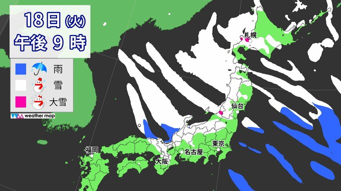 “強烈寒波”居座り…近畿・東海なども大雪か 2月だけで“10年に一度の大雪・低温”が2回も 雪はいつどこで降る?最新のシミュレーション 気象庁発表 天気【大雪情報】 2025年2月14日(金) 19:53 国内 天気 また、太平洋側にも雪雲が流れ込み、再び雪が降る可能性があります。 実際には19日(水)よりも前に寒気が入るため、その前の18日(火)ごろから、 日本海側を中心に、警報級の大雪のおそれがあります。