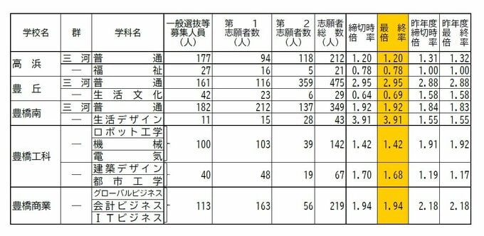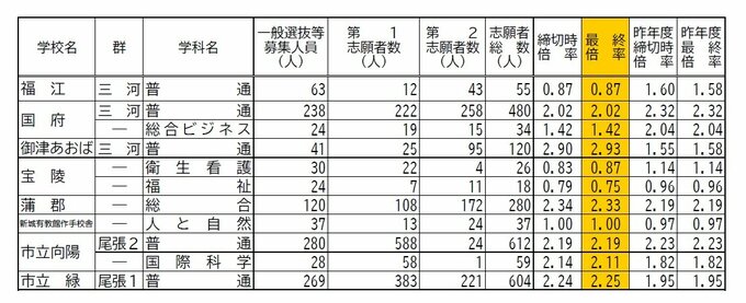【確定版】愛知県公立高校入試2025 志願倍率 全日制課程普通科 一宮1.51倍、熱田3.21倍、旭丘1.55倍、天白3.14倍、岡崎1.35倍 令和7年度の出願状況 全校掲載