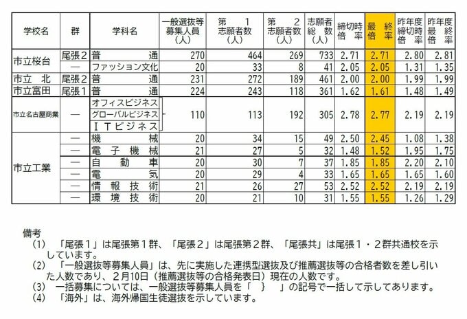【確定版】愛知県公立高校入試2025 志願倍率 全日制課程普通科 一宮1.51倍、熱田3.21倍、旭丘1.55倍、天白3.14倍、岡崎1.35倍 令和7年度の出願状況 全校掲載