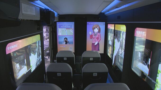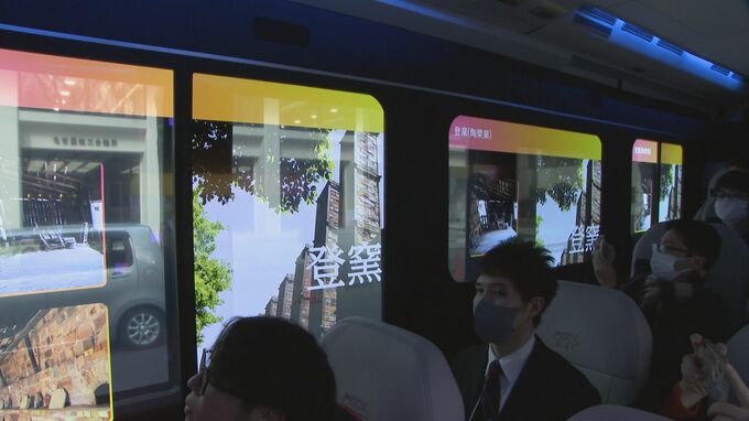 名古屋では19日、車内に映すデジタルコンテンツのデモ体験が!走行中の位置情報と連動し、観光スポットや商業施設の情報などが窓や天井に表示されます。