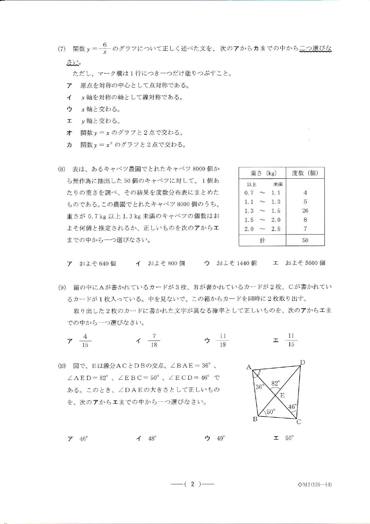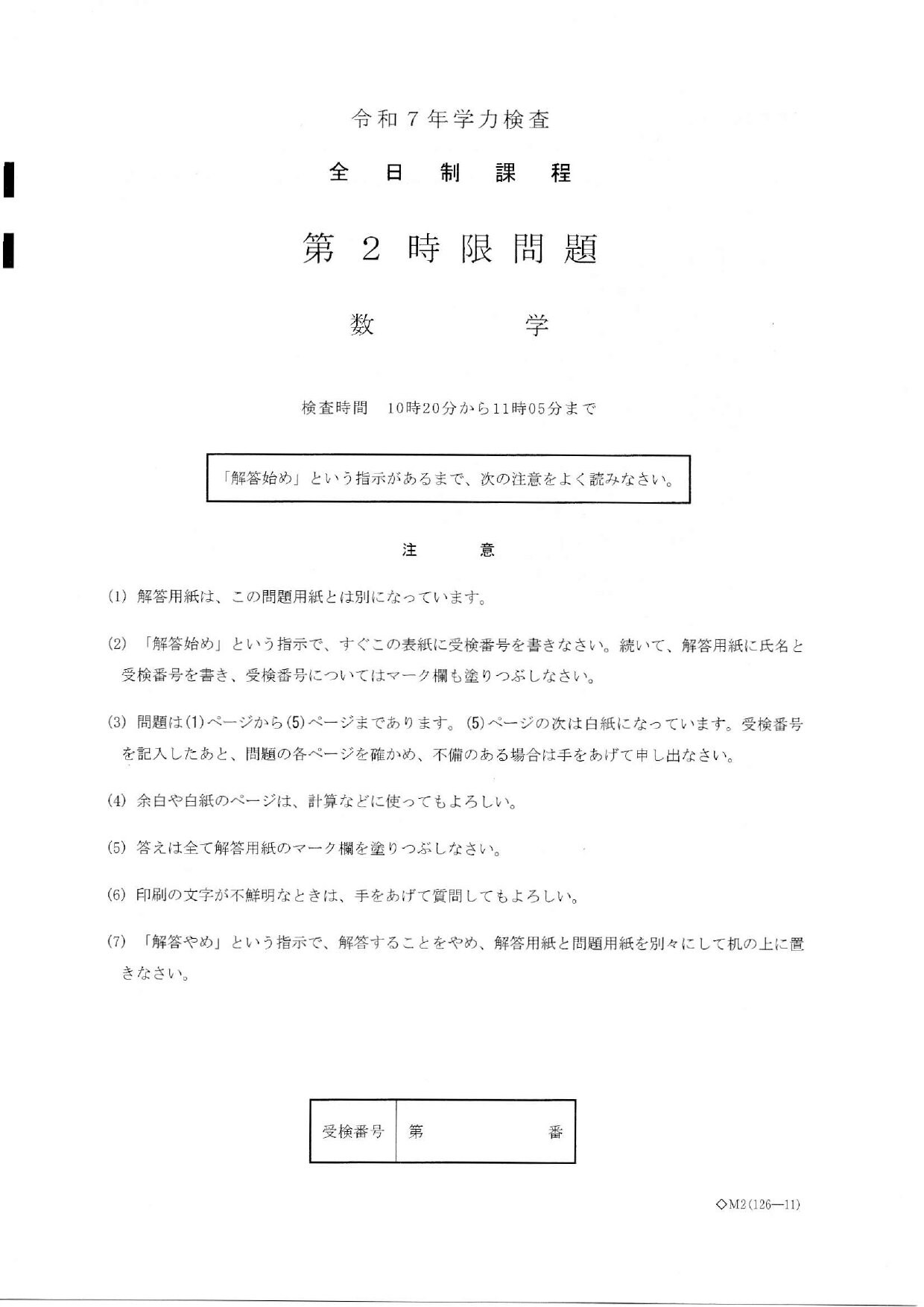 愛知県公立高校入試2025「数学」の試験問題・解答「6+10÷(-2)の答えは?」など全問掲載