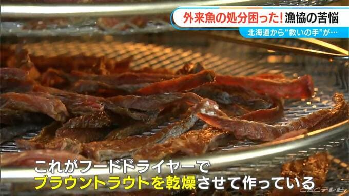 「フードドライヤーで、切ったブラウントラウトを乾燥させて作っている」