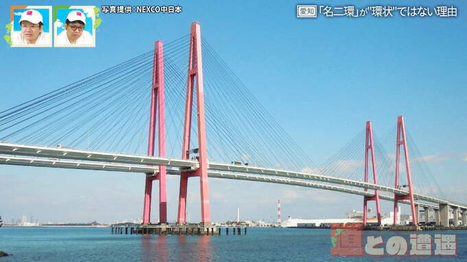 「名古屋港に架かる橋に注目すれば、円になっていない理由がわかる」と村松さんが案内してくれたのは、名港中央ICから飛島ICを結ぶ「名港西大橋」。