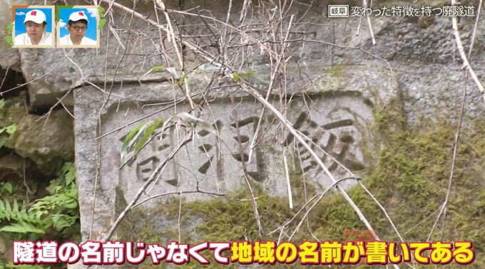 隧道は町と町の境目にあることが多く、同じ隧道でも扁額には地名が書いてあることがあるそう。そのため、この「久保原隧道」も山岡町久保原側には「久保原隧道」、岩村町飯羽間側には「飯羽間」と、扁額には地域の名前が書かれています。