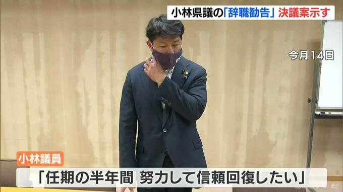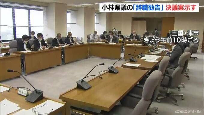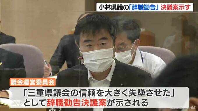 小林議員は10月14日、自身の進退について、「任期の半年間、努力して信頼回復したい」などと答えるにとどめていましたが、17日開かれた三重県議会の議会運営委員会で、新政みえや共産党などから、「三重県議会の信頼を大きく失墜させた」として、小林議員に対する辞職勧告決議案が示されました。