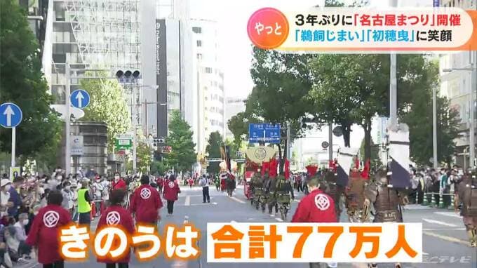 名古屋まつり協進会によりますと、初日15日の人出はまつり行列に28万人、会場イベントは19万8700人だったということです。さらに2日目の16日は、まつり行列と会場イベントでなんと77万人が訪れました。