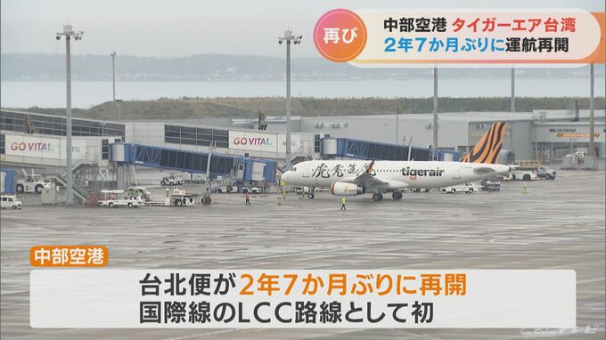 LCC=格安航空会社の「タイガーエア台湾」。10月政府の水際対策で個人の外国人観光客の入国を緩和して以来、17日中部空港で、台北便が2年7か月ぶりに運航を再開しました。