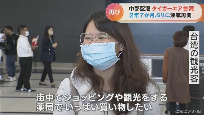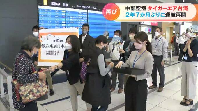 国際線の到着ロビーでは、中部空港の職員が台湾からの観光客らを歓迎ムードで出迎えました。
