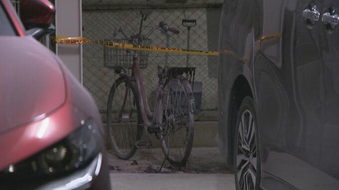 26日の夜、名古屋市東区の集合住宅の駐車場で自転車が燃える不審火がありました。数日前にも同じ場所で不審火があり、警察が関連を調べています。