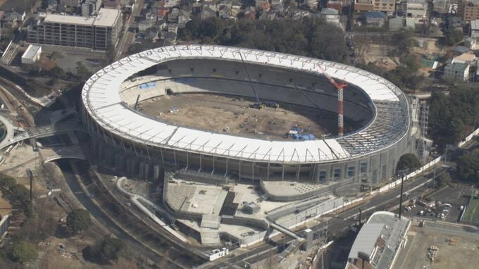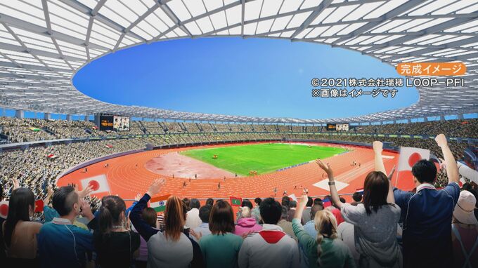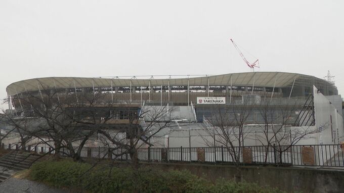 収容人数は3万人。360度客席に囲まれた空間に「熱狂の渦」を表現したという屋根も設置されます。建て替え工事はおととし4月から行われています。