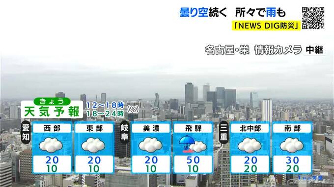 きょうの東海地方は各地でスッキリしない空模様が続くでしょう。