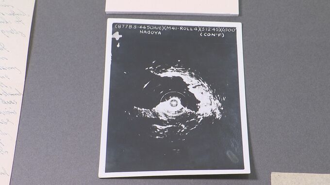 「NAGOYA」と書かれ、日付は1945年3月12日。名古屋への空襲を上空からレーダーを通して撮影されたものです。