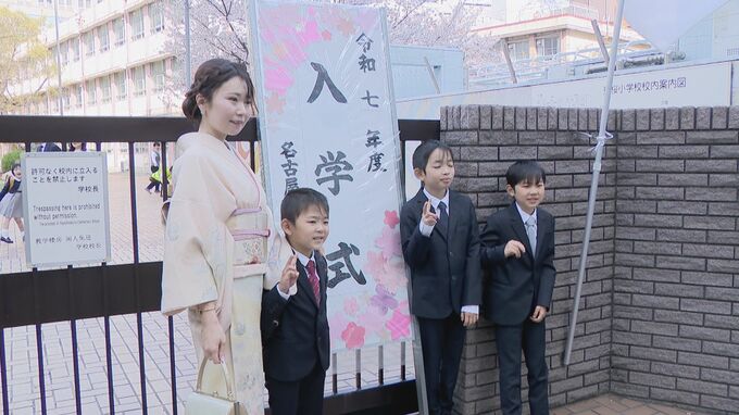 桜の下、ランドセルを背負った新1年生たち。名古屋市では、きょう市内260の市立小学校で入学式が行われました。