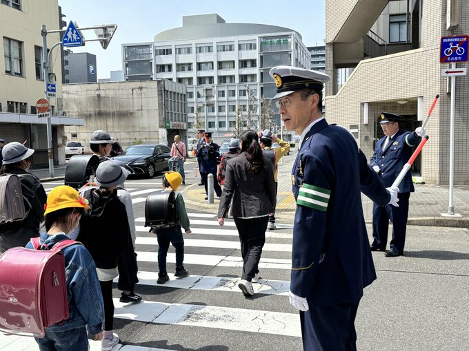 また、中区にある丸の内小学校でも、中警察署の河合博明署長が下校する子どもたちに「車に気をつけて知らない人についていかないように」などと呼びかけました。