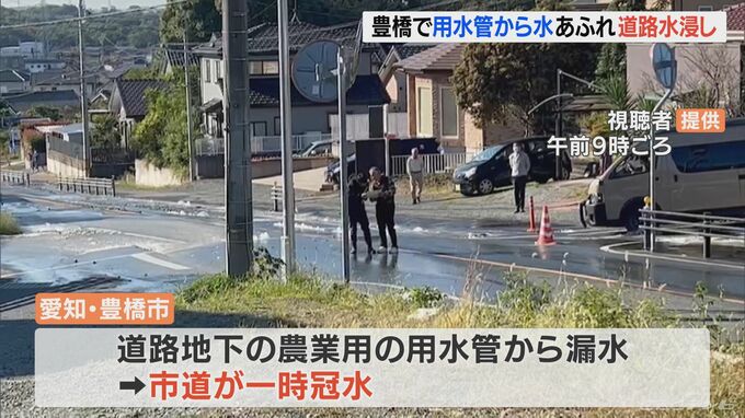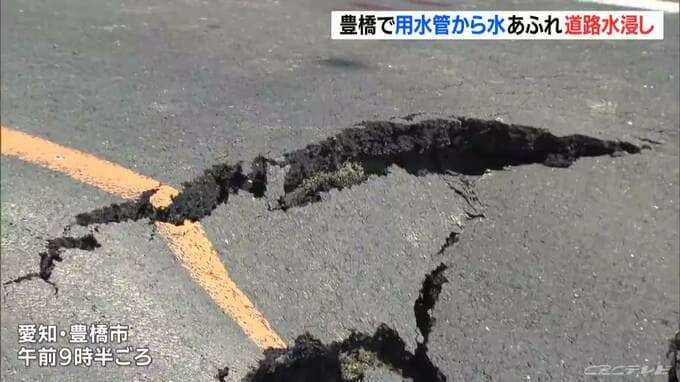 豊橋市によりますと21日午前7時ごろ、豊橋市大岩町で、農業用水の送水管に亀裂が入り、市道が一時冠水しました。付近住民の生活用水への影響はないということです。