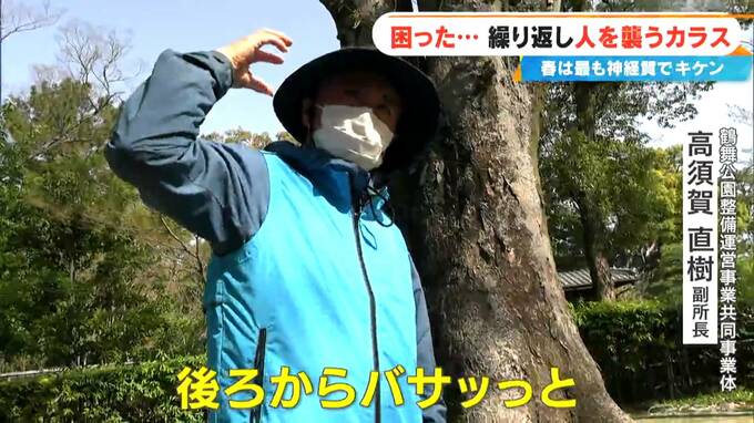 そう語るのは、鶴舞公園の維持管理に携わるこの男性。先月末から公園の一角にある林を通るたび、頻繁にカラスに襲われるようになったといいます。