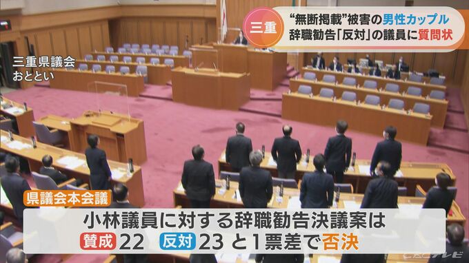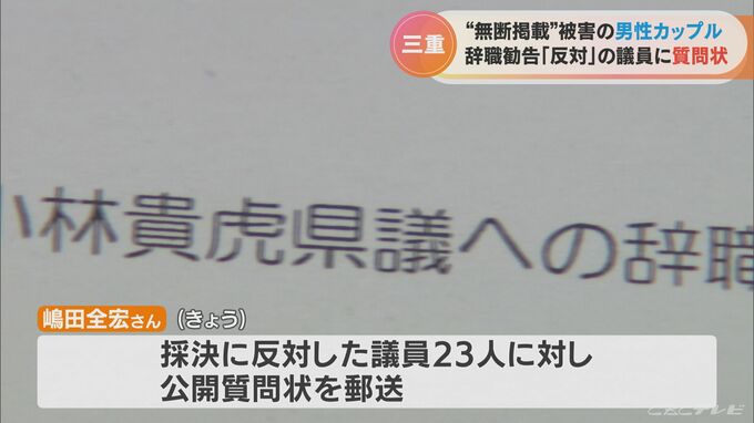 これを受け、去年、小林議員に住所を無断でブログに掲載された三重・伊賀市の男性カップルが21日、採決に反対した議員23人に対して、反対した理由や今後事実の解明をする考えがあるかなどを問う公開質問状を郵送しました。