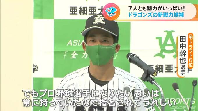 (中日ドラゴンズ6位指名 田中幹也選手)「病気になったときは、野球ができるかどうか分からないと自分でも思っていて、でもプロ野球選手になりたいという思いは、常に持っていたので指名されてうれしい」